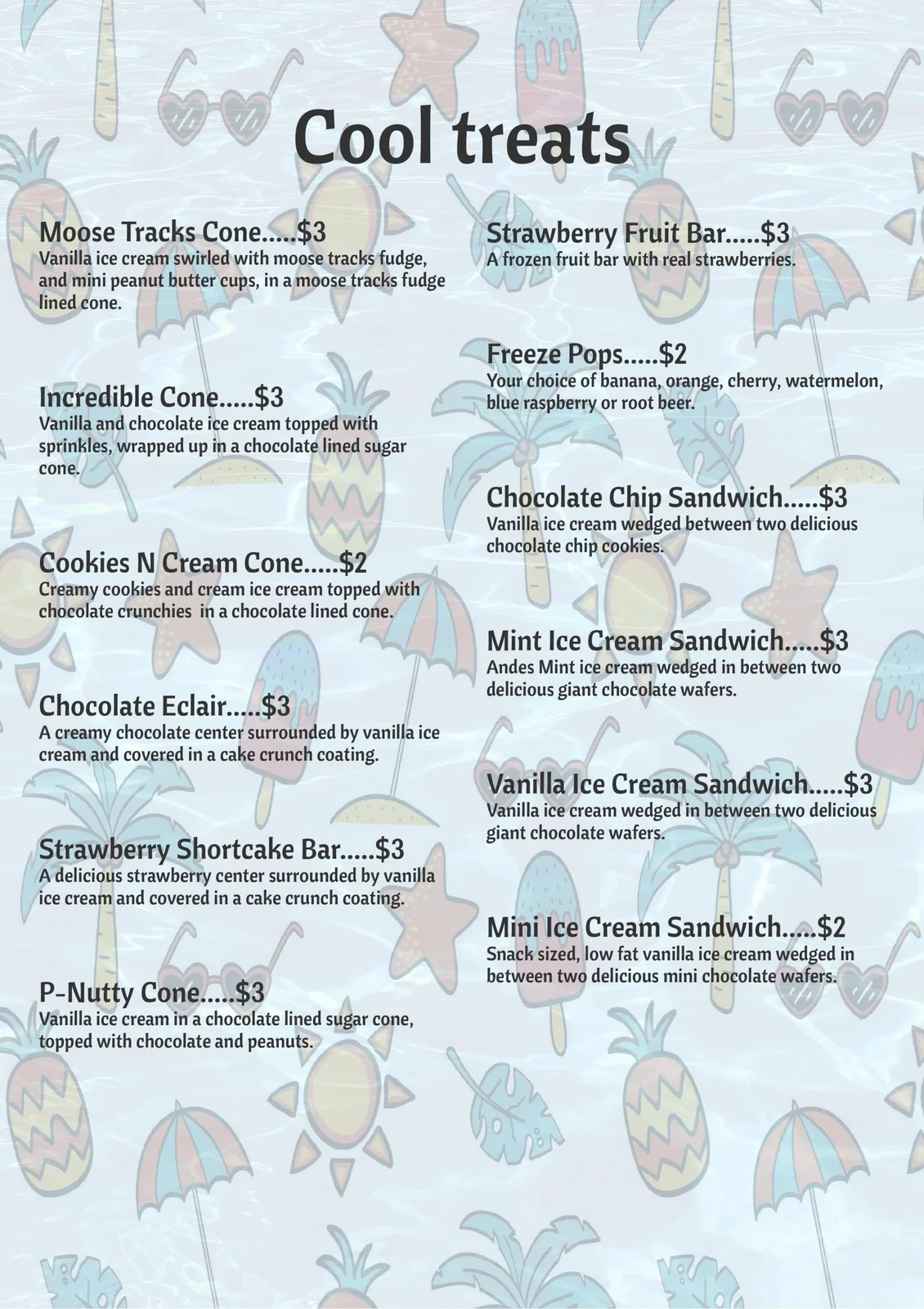 Poolside Ice Cream Novelties