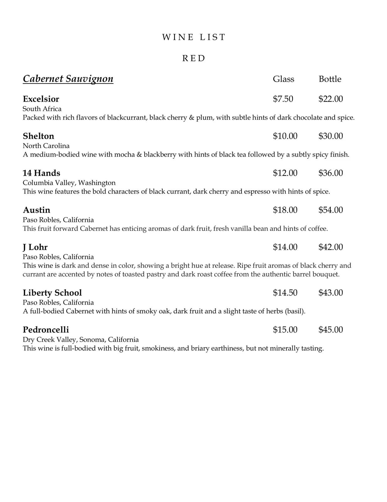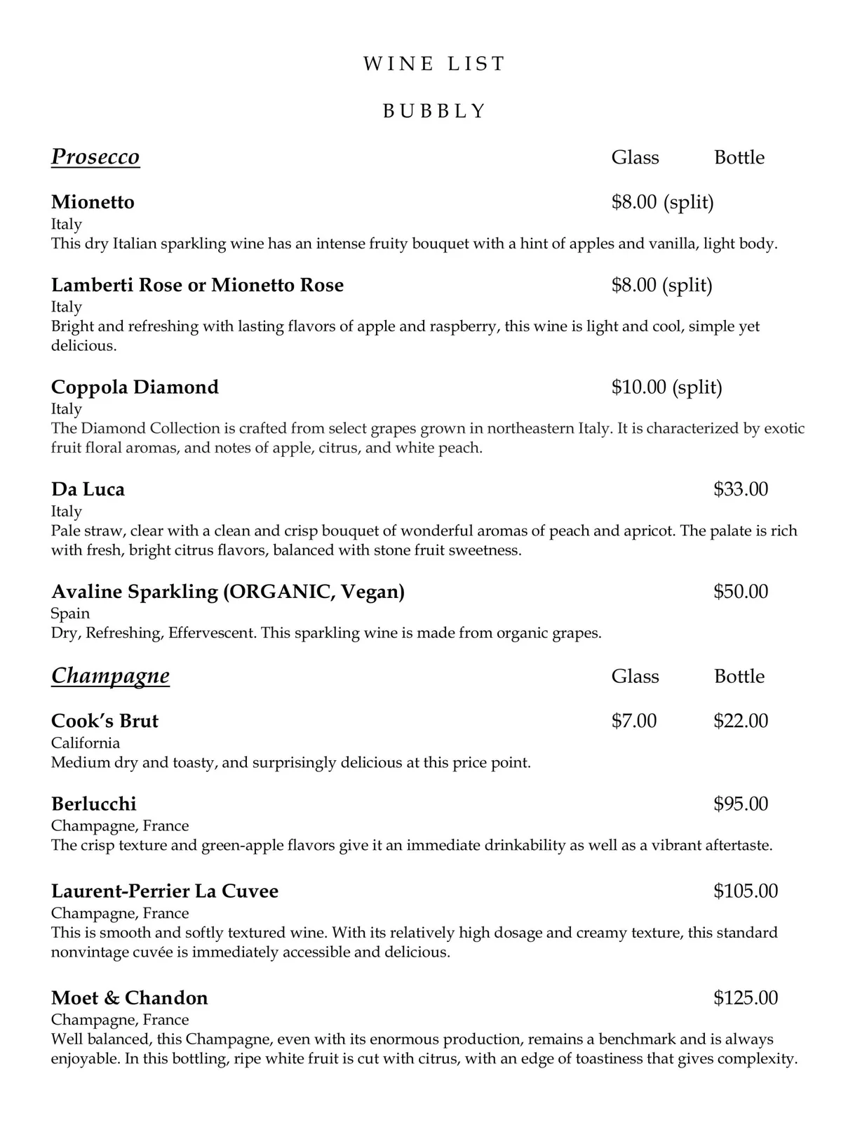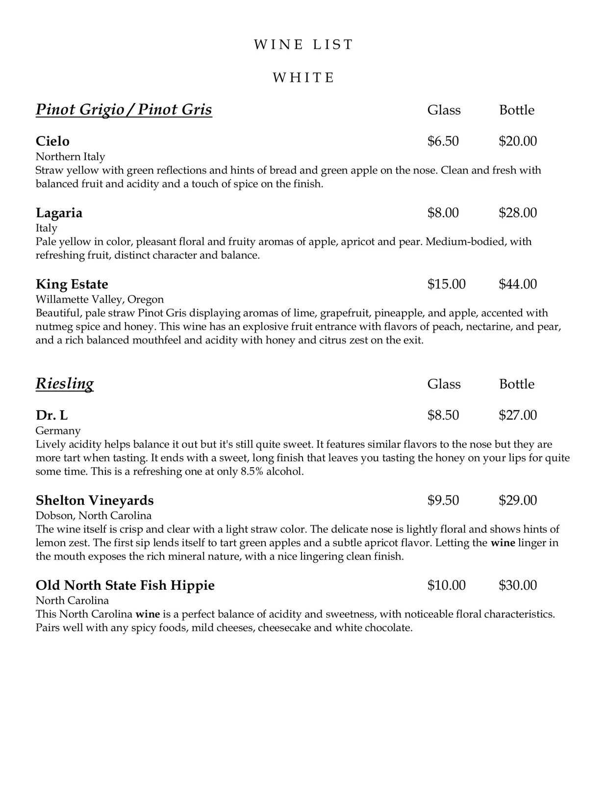 Wine List
