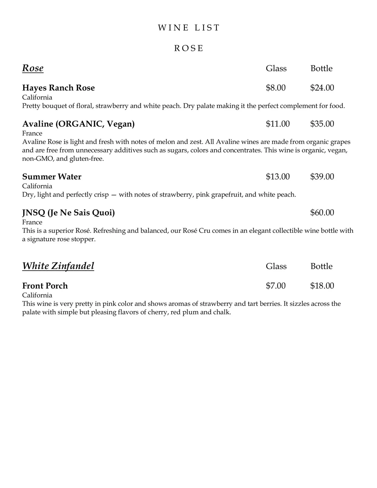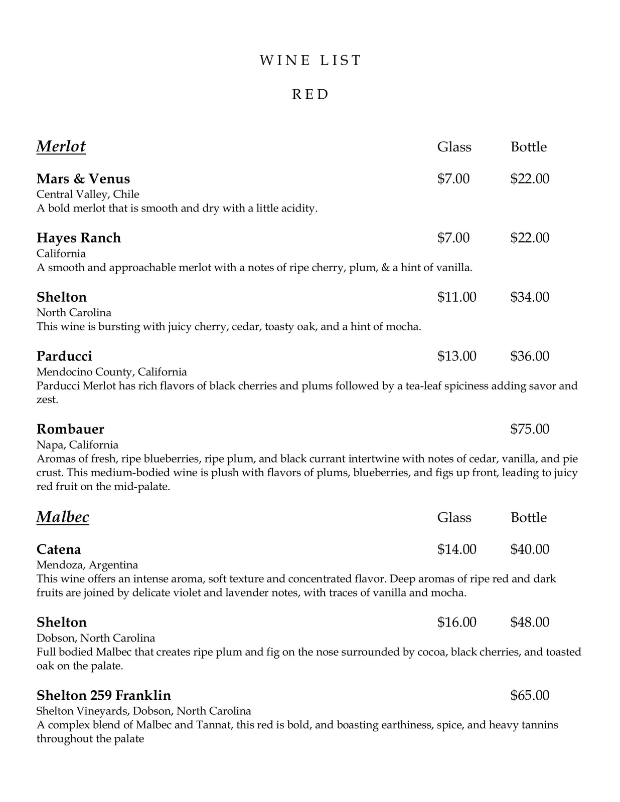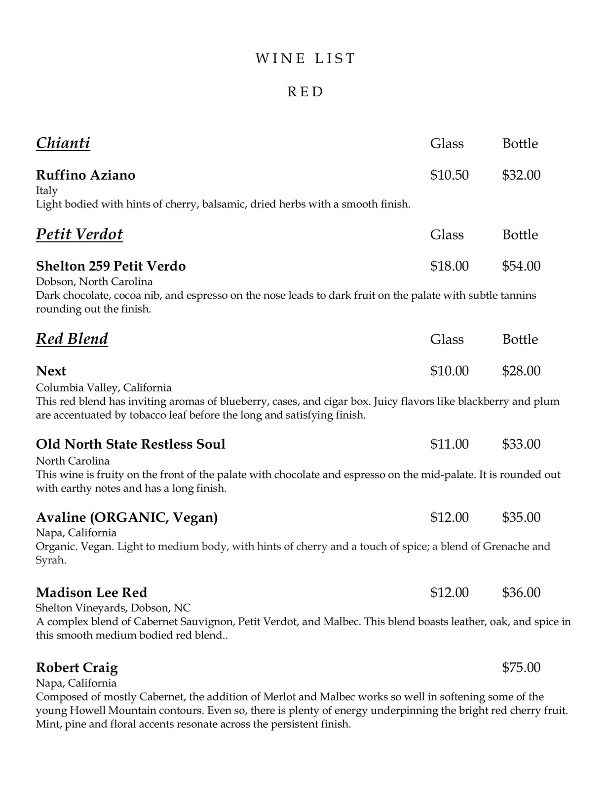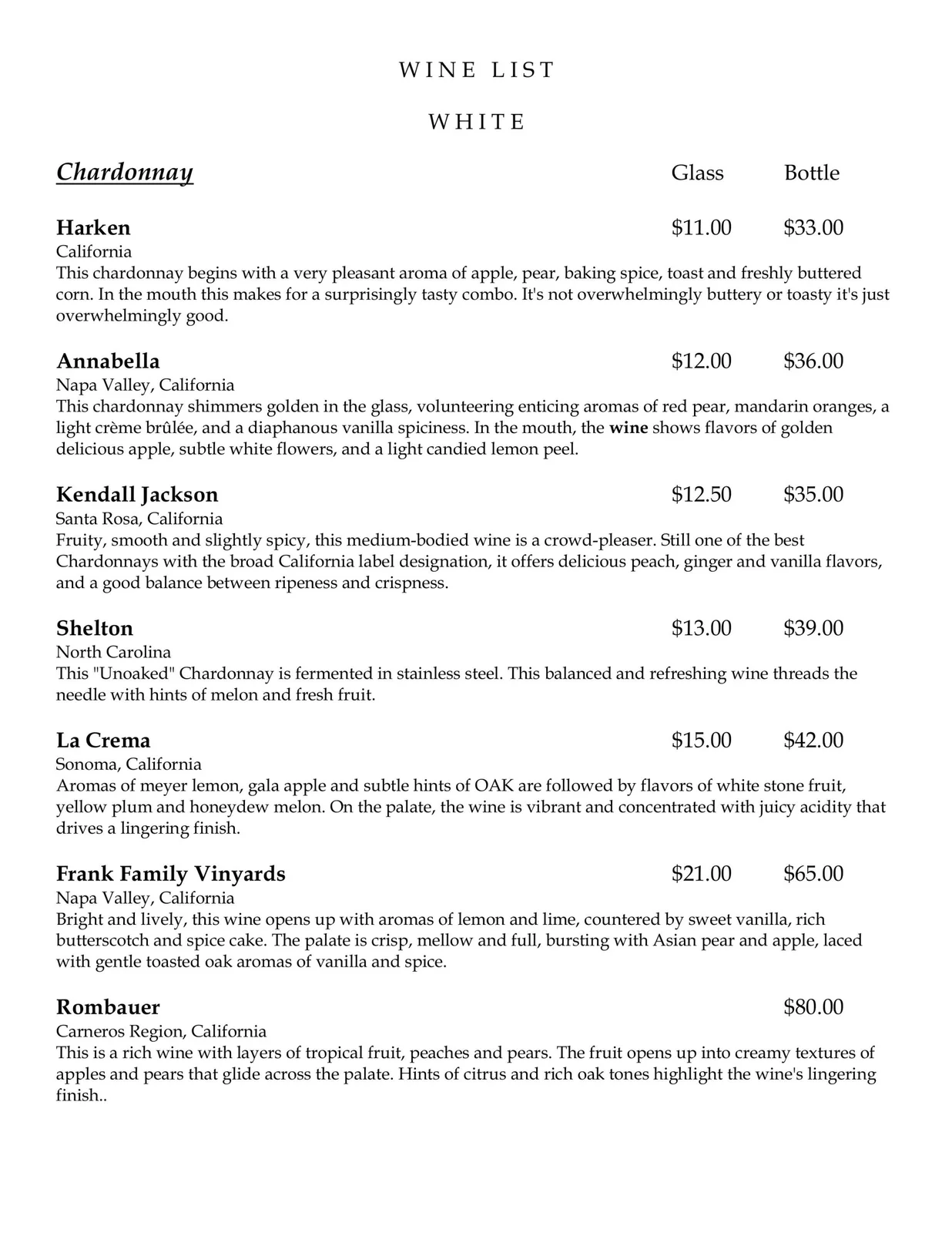 Wine List